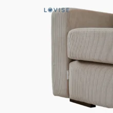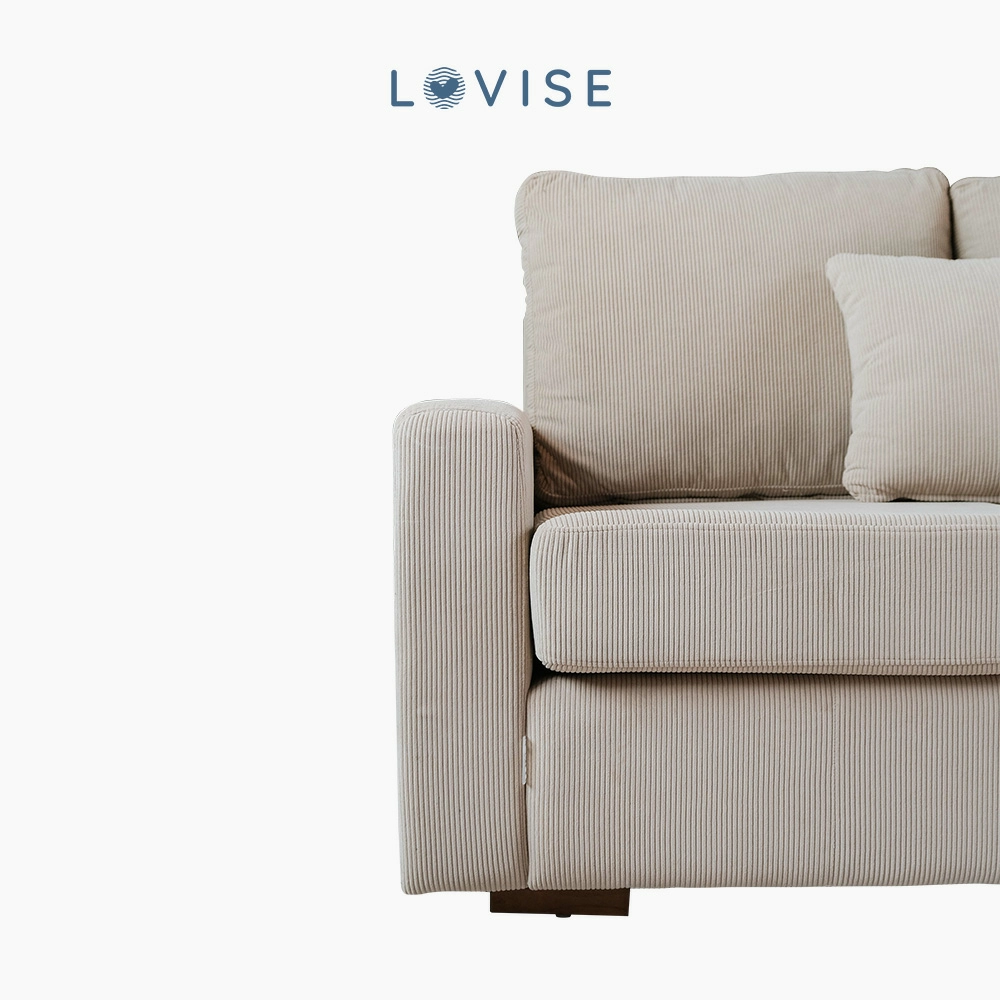 Sofa Sudut Taffy Nest ini Lovise rancang untuk menjadi tempat ternyaman saat kamu ingin bersantai, ngobrol, atau sekadar rebahan seharian. Terbalut kain premium corduroy bergaris halus sehingga memberi sentuhan visual yang lembut sekaligus karakter unik pada ruang. Desainnya yang minimalis mudah menyatu dengan berbagai gaya interior.